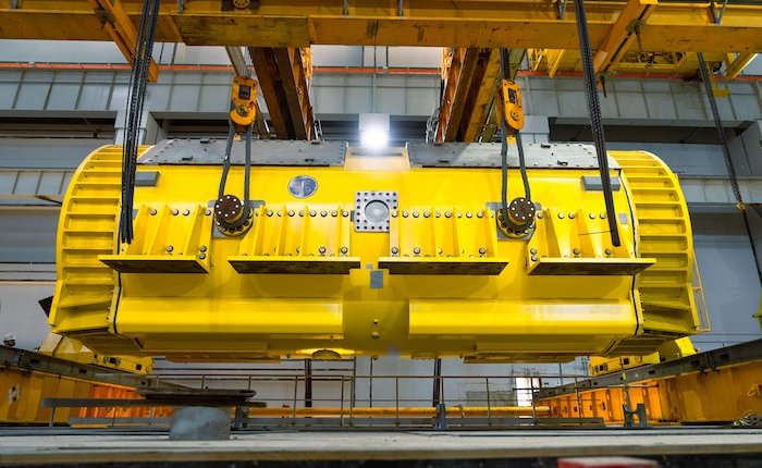 Enerji Günlüğü - Rusya Devlet Nükleer Enerji Kuruluşu Rosatom tarafından inşa edilen Akkuyu Nükleer Güç Santrali (NGS) sahasında, 2. Güç Ünitesi’nin makine dairesindeki ana montaj işlemlerinden biri daha tamamlandı: Turbojeneratör Statoru tasarım konumuna yerleştirildi.