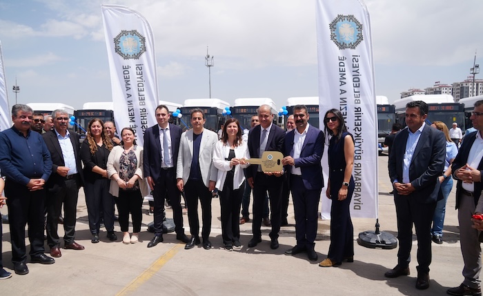 Anadolu Isuzu otobüslerin teslimat törenine Diyarbakır Büyükşehir Belediyesi Eş Başkanları Ayşe Serra Bucak Küçük ve Doğan Hatun, Diyarbakır Büyükşehir Belediyesi Genel Sekreteri Emrullah Gördük ile Ulaşım Daire Başkanı Temel Cengiz katıldı.