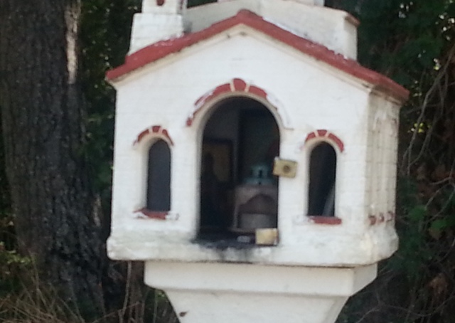 Bu arada, Yunanistan gümrüğüne girerken, kuyruktayız ve solumuzda üzerinde haç da bulunan, küçük, camekanımsı bir şey var. İçinde de idare lambası mı desem, şamdan mı desem, tam seçemediğim ama bana gaz lambası gibi görünen bir şey yanıyor. Şimdi cehaletimi bağışlayın, ne olduğunu doğrusu bilmediğim bu şeyin benzerlerine, tüm Yunanistan`da sıkça, (özellikle de ülkenin Kuzey Batısı`nda ve komşu Makedonya`da daha sık) rastladık. Fırsat bulup da tam olarak ne olduğunu sorabileceğim kimseye de, dönüşte Türkiye`ye girişimize az bir süre kalana dek rastlamadım. Başta bunu, Hıristiyanların dini ritüellerinden birinin, farklı bir forma bürünmüş hali olarak değerlendiriyordum... "Demek ki" diyordum kendi kendime, "Gümrükteki o camekan, aynı zamanda Yunanistan`ın kültürel figürlerinden biriymiş de o yüzden oraya koymuşlar."