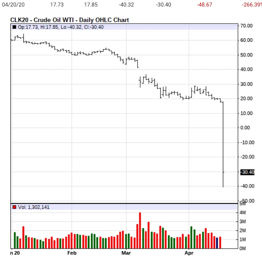 Brent tipi petrol hala bu fiyatlarda tutunmaya çalışıyor ama diğer bir çok petrol tipinde 20 Nisan günü Mayıs vadeli kontratlarda petrolün negatif fiyatlandığını görüyoruz. Sudan ucuzdan öte, üste para veriyorlar adeta...